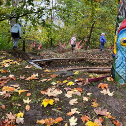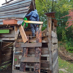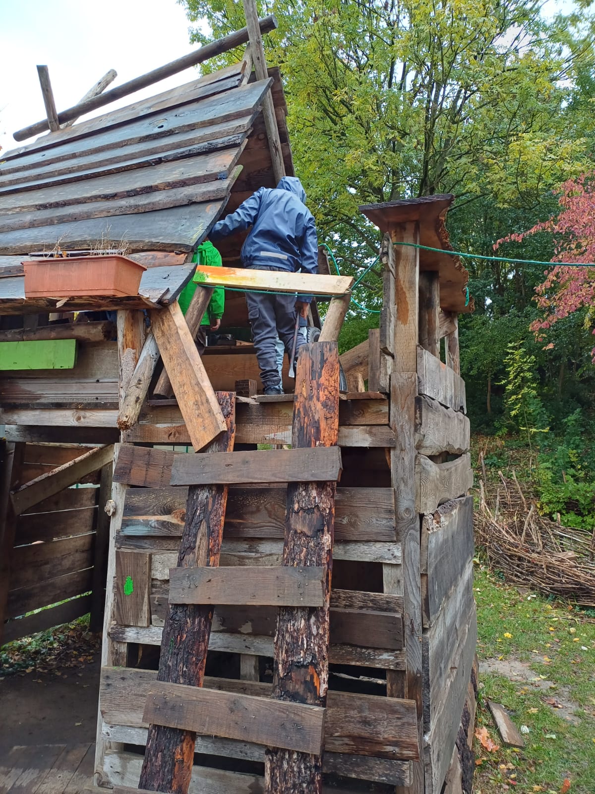 Schon am nächsten Tag stand ein Ausflug zum Bauspielplatz in Buntekuh auf dem Programm. In passender Halloween-Stimmung wurde dort gebaut, gesägt, gehämmert und eifrig gematscht. Auch das Spielen im großen Sandkasten kam nicht zu kurz. Zum Abschluss des Tages saßen wir gemütlich am Lagerfeuer und haben Marshmallow und leckeres Stockbrot gegrillt.