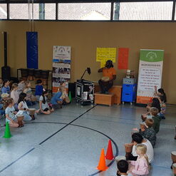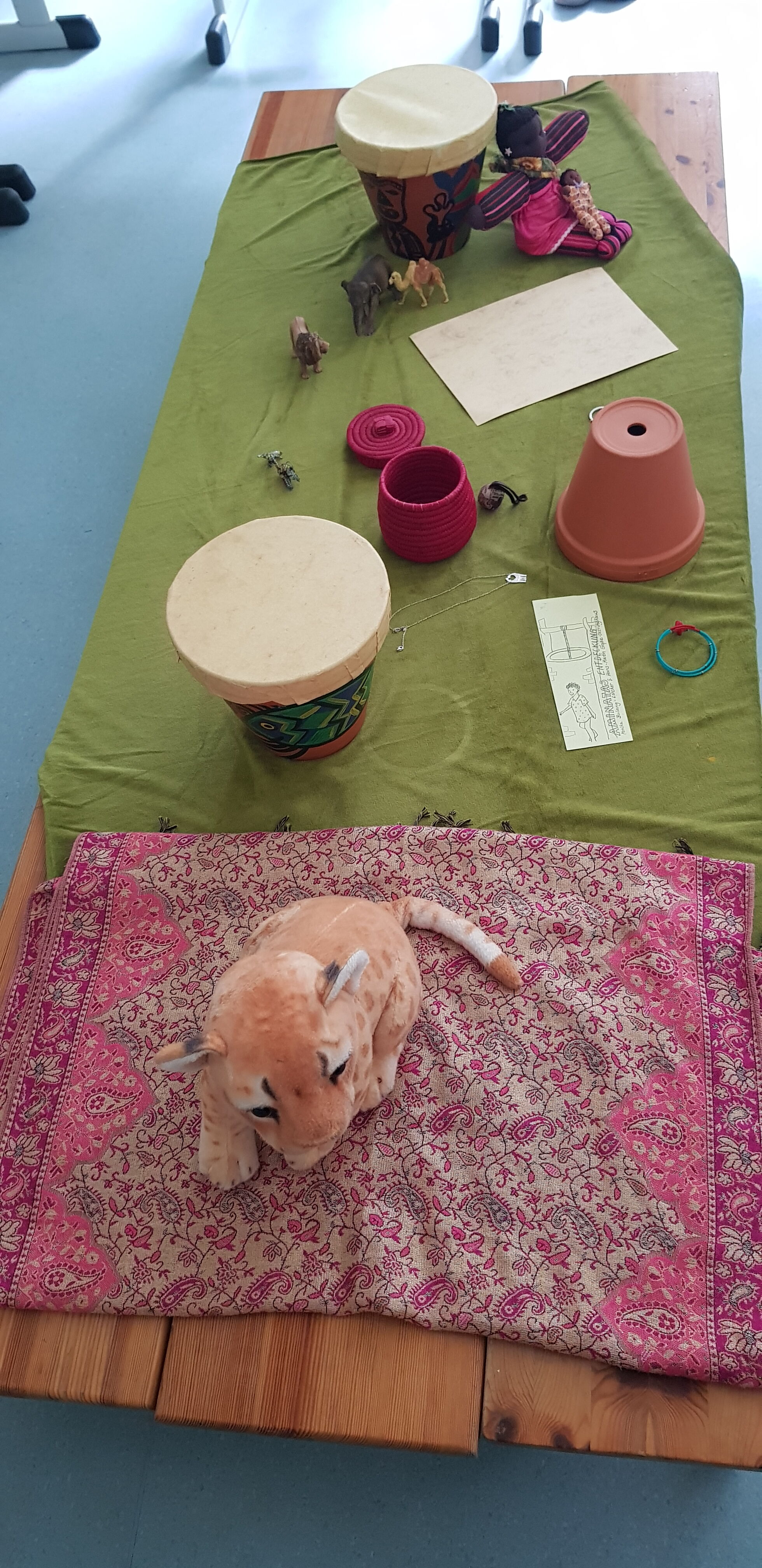 Es gab dann für jeden Jahrgang täglich noch eine Trommelstunde mit Baba, bei dem jeder das Lied zu seinem Jahrgangstier mit der entsprechenden Choreografie lernen konnte (Klasse 1: Antilopen, Klasse 2: Giraffen, Klasse 3: Hippos, Klasse 4: Elefanten).