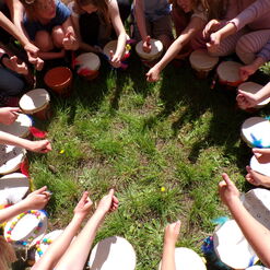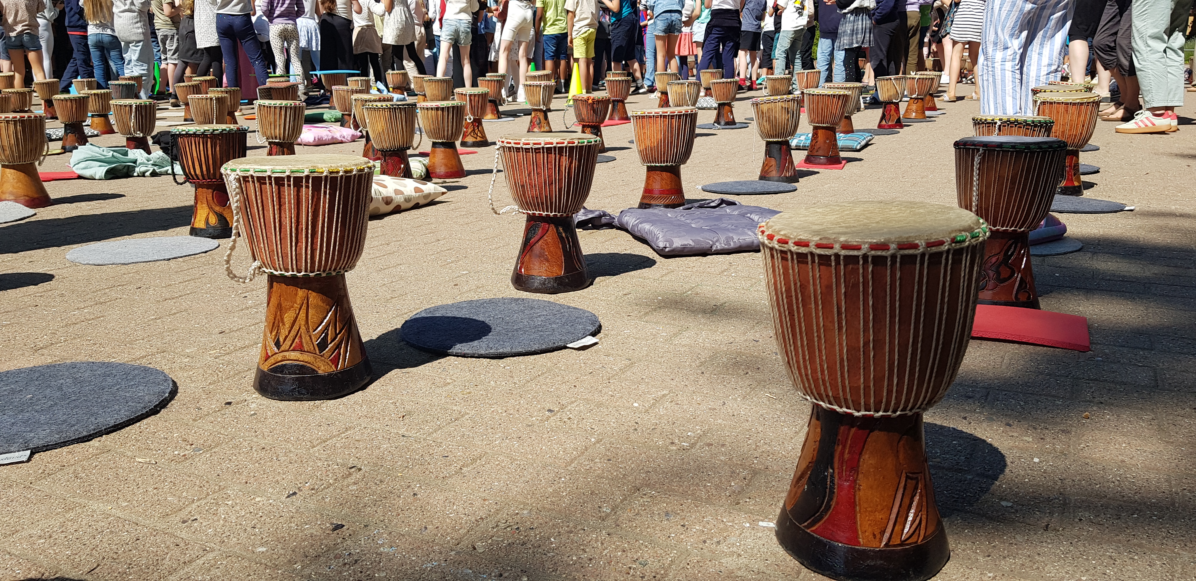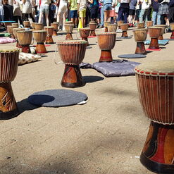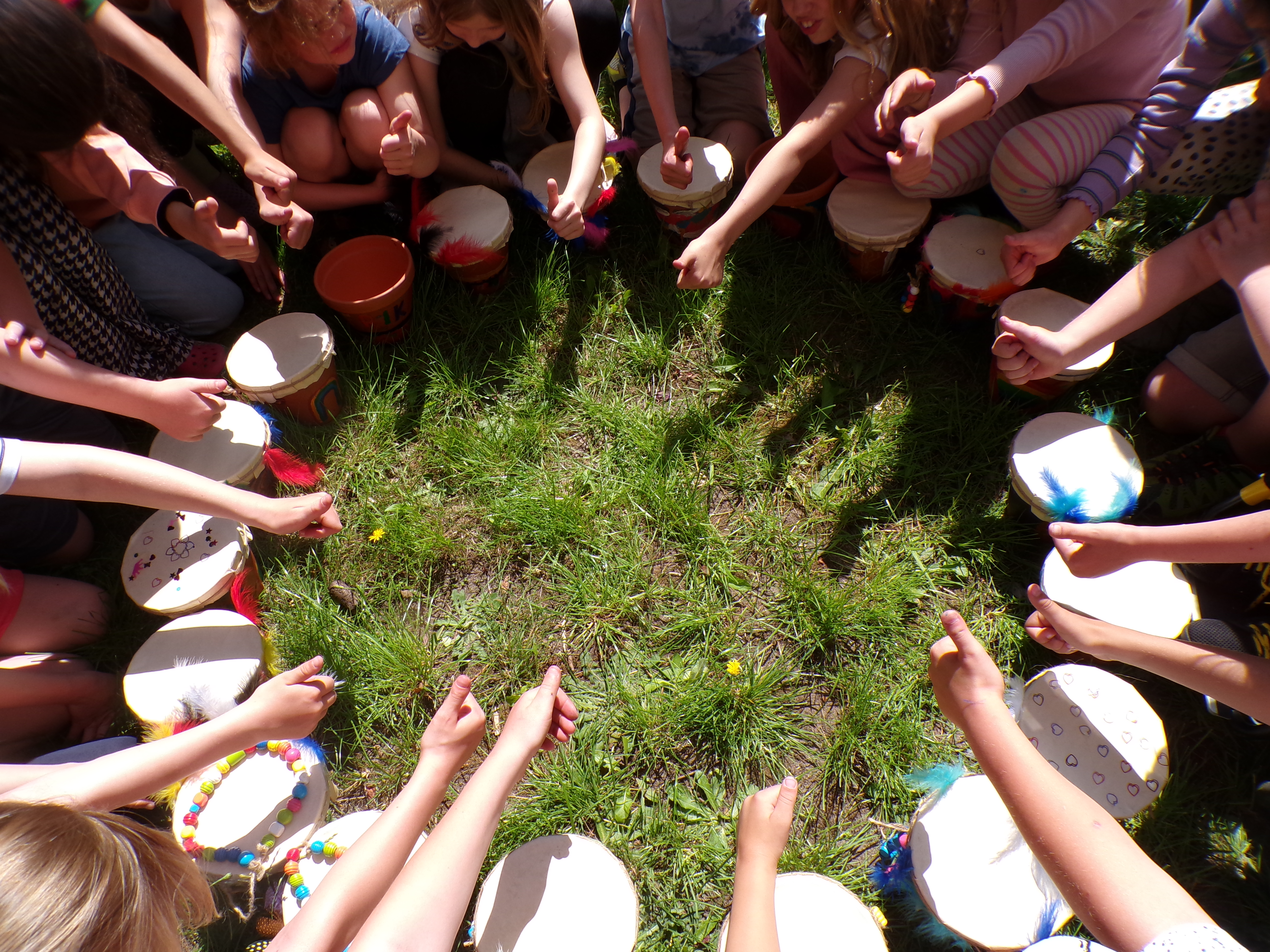 Baba hatte nicht nur eine Trommel für jeden Teilnehmer (Kinder und Erwachsene) dabei, sondern auch ganz viel positive Energie, gute Laune und tolle Musik.