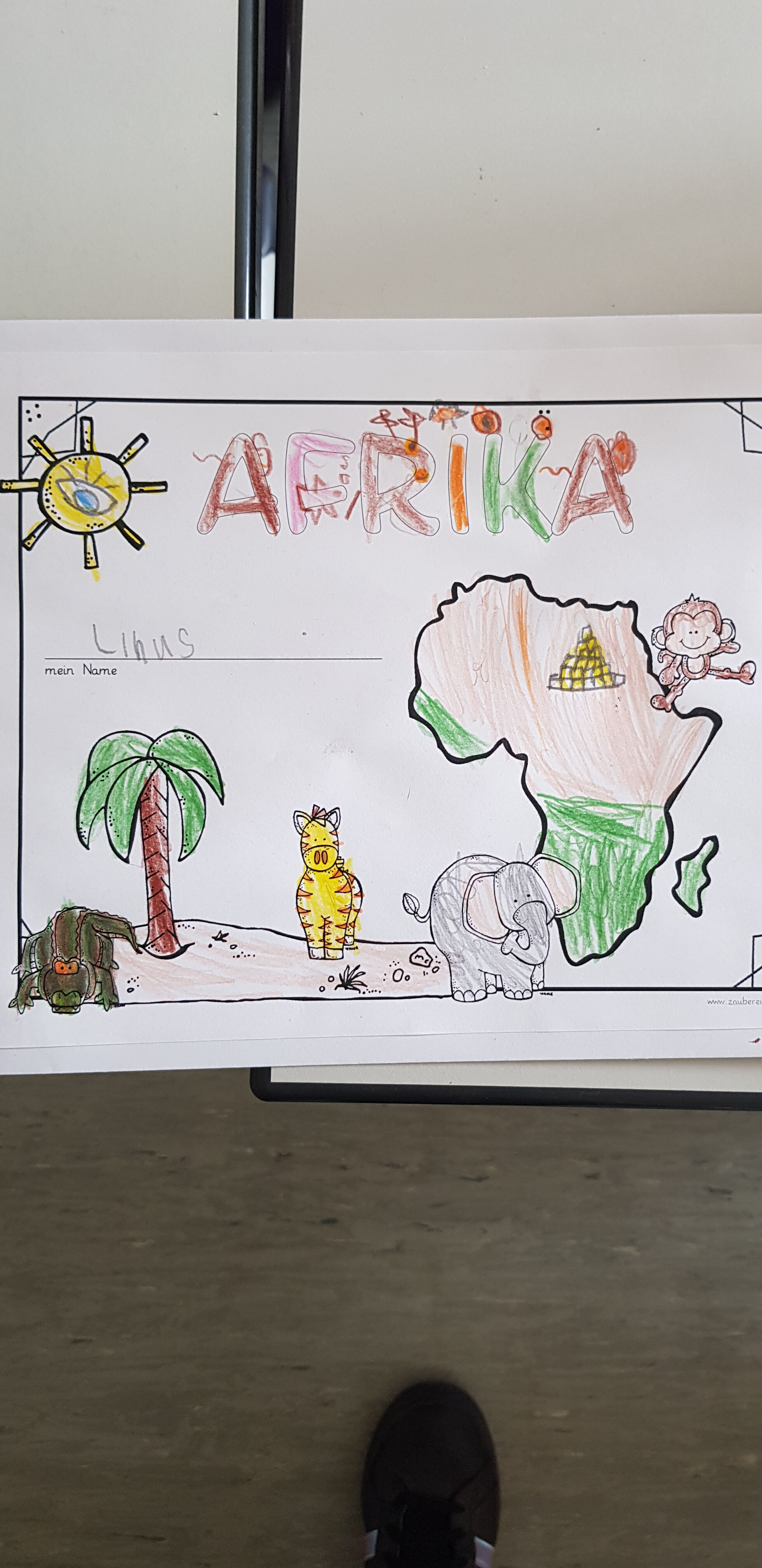 Am Vormittag haben wir in den Klassen an Projekten zu unterschiedlichen Themen, die alle mit „Afrika“ zu tun hatten, gearbeitet.